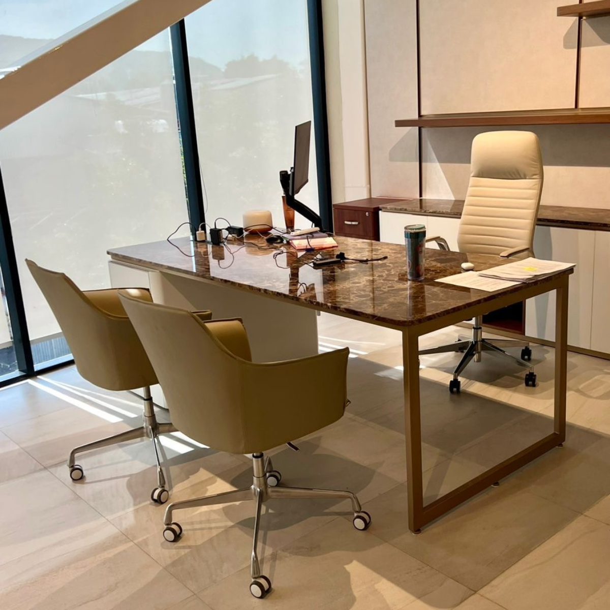 Nos encargamos de todo el proceso —fabricación, personalización e instalación profesional— para transformar cada espacio en un lugar donde productividad y bienestar se unen.